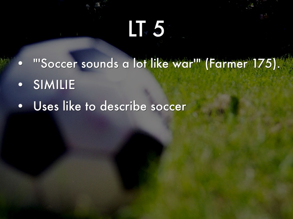 "'Soccer sounds a lot like war'" (Farmer 175).