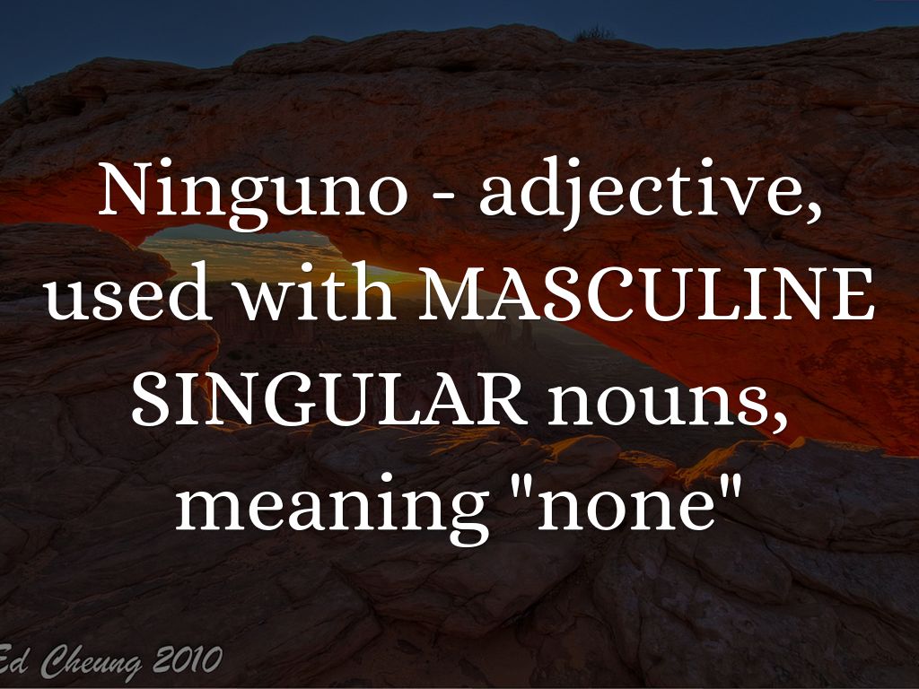 Ninguno - adjective, used with MASCULINE SINGULAR nouns, meaning "none"