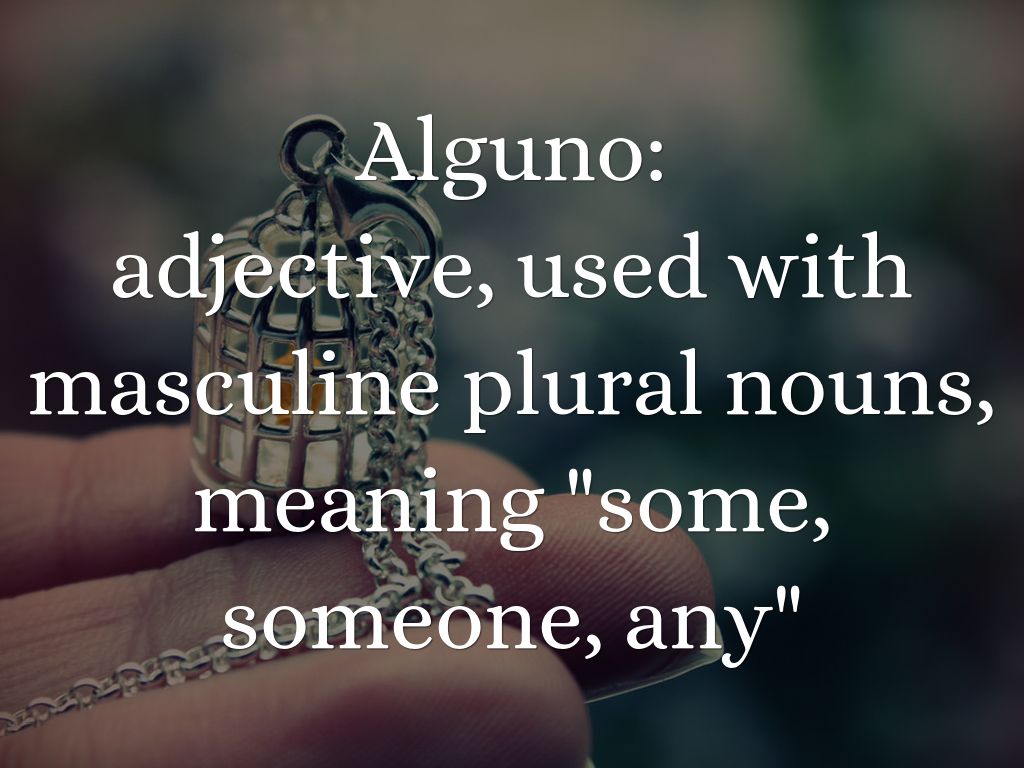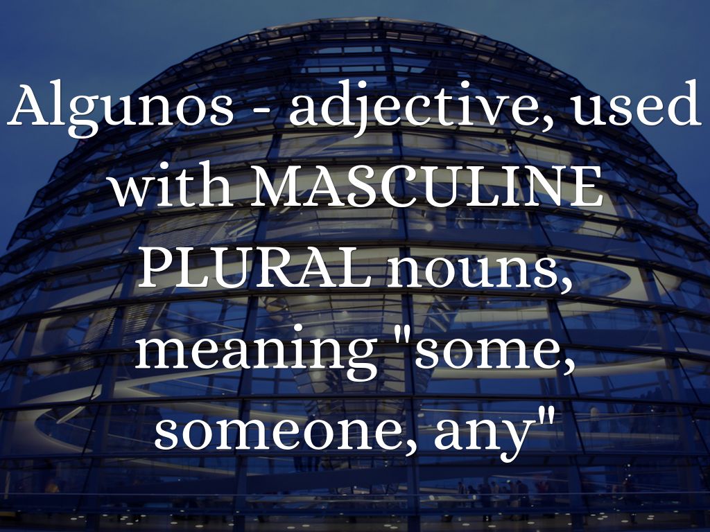 Algunos - adjective, used with MASCULINE PLURAL nouns, meaning "some, someone, any"