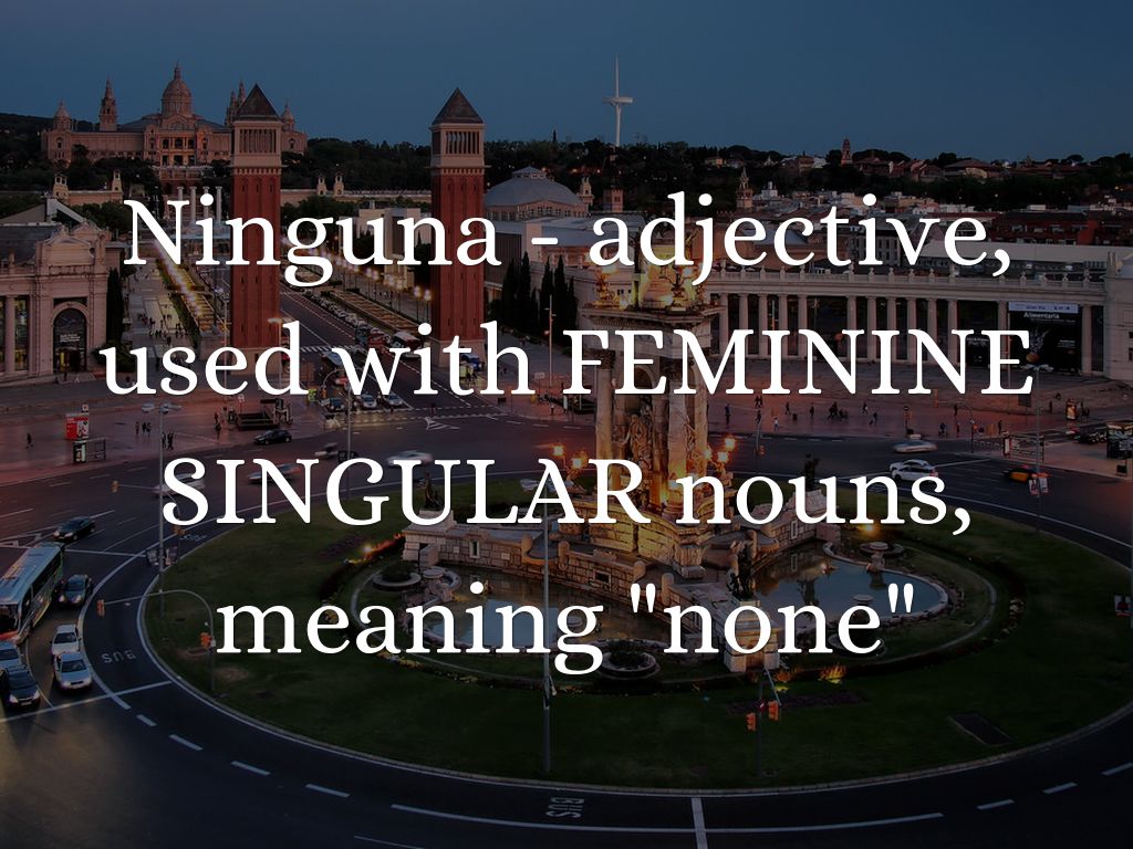 Ninguna - adjective, used with FEMININE SINGULAR nouns, meaning "none"