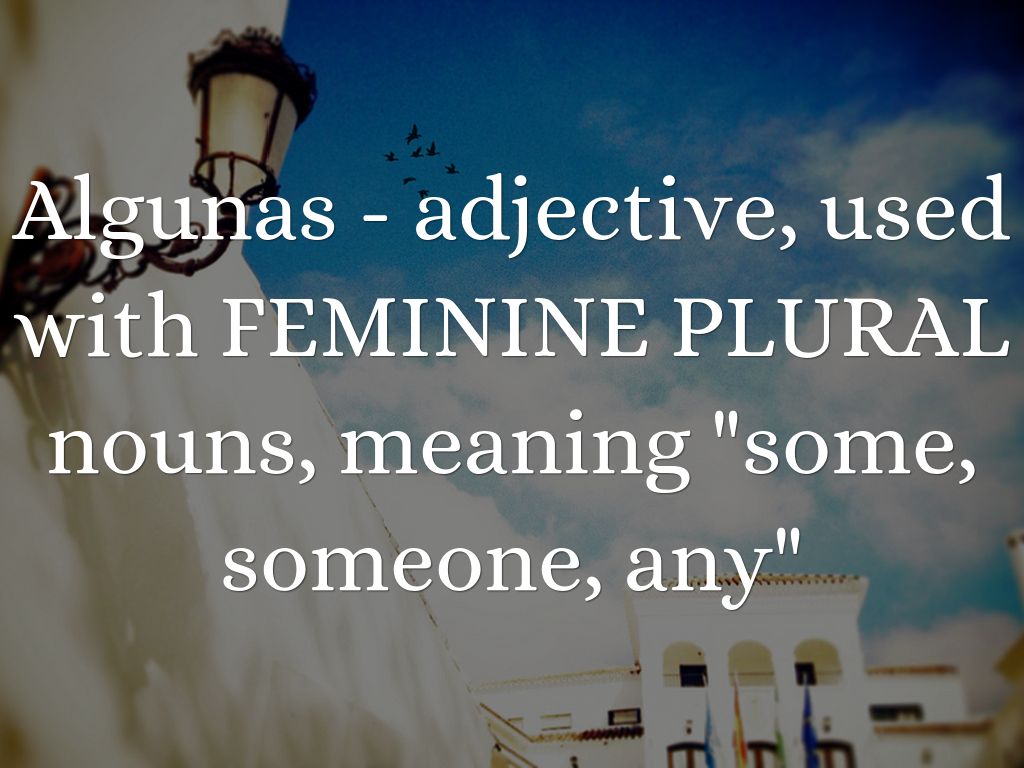 Algunas - adjective, used with FEMININE PLURAL nouns, meaning "some, someone, any"