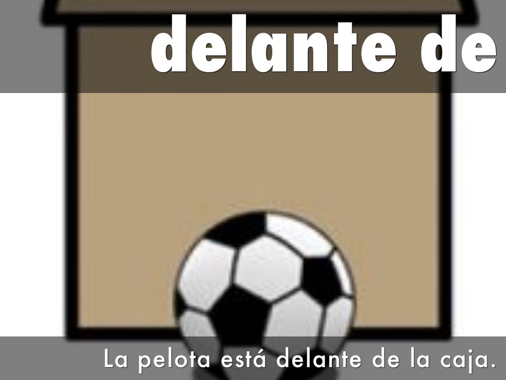 La pelota está delante de la caja.