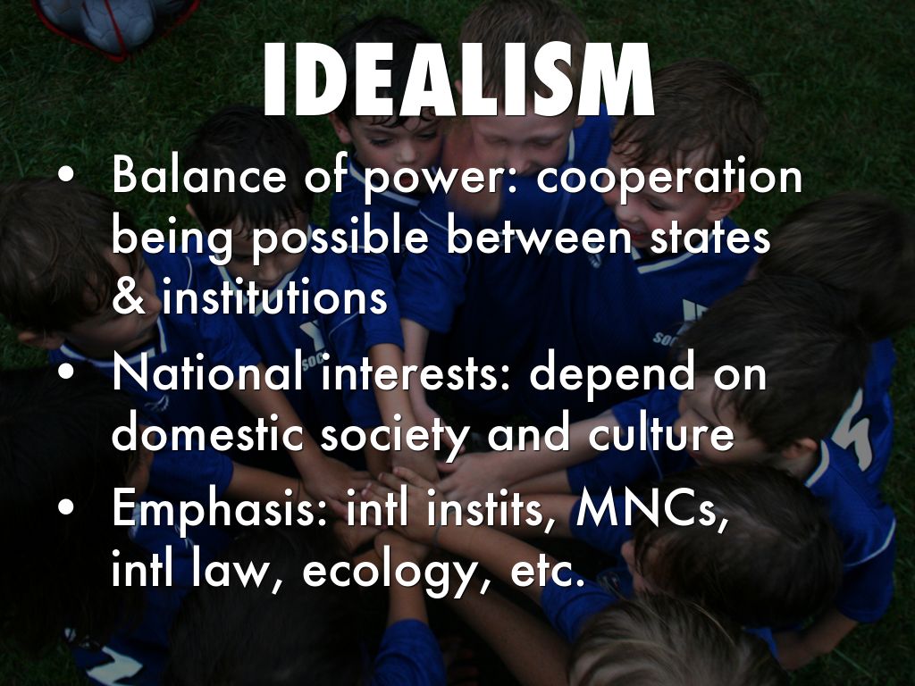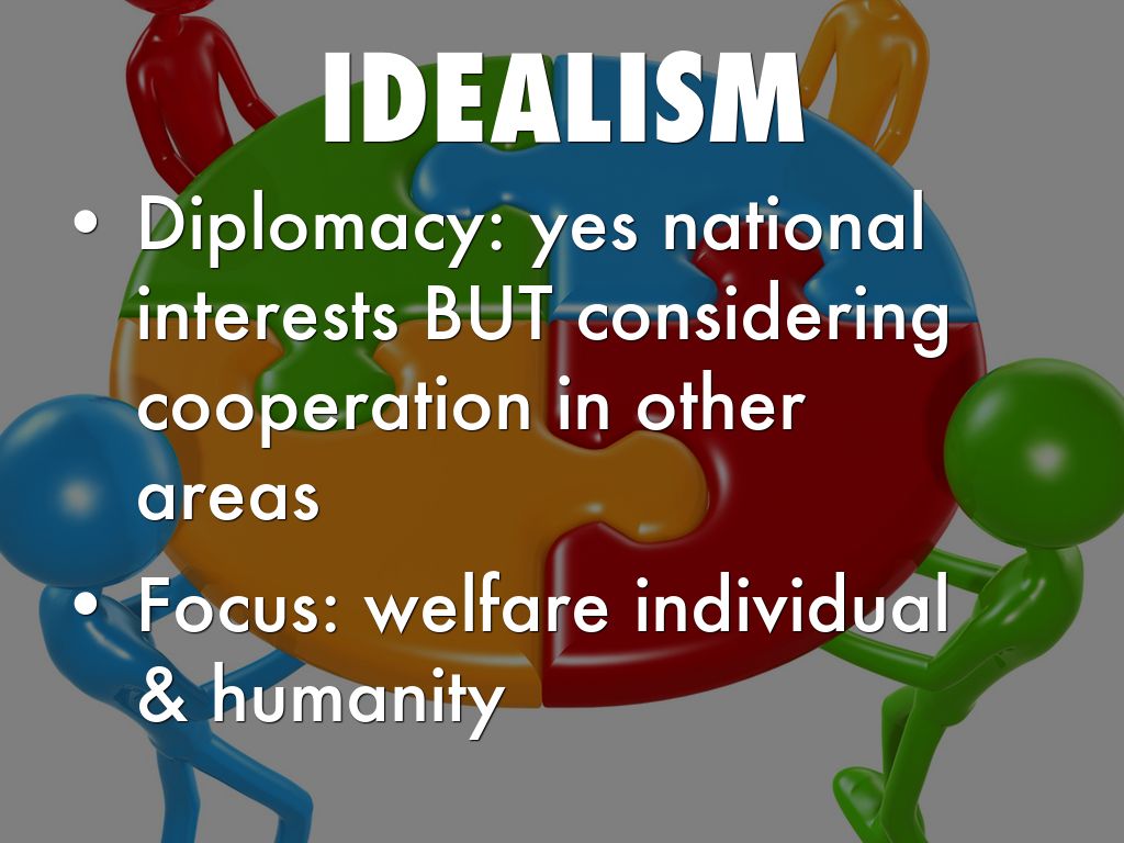 Idealization: aspire at how relations between states SHOULD be like & to meet the basic human needs