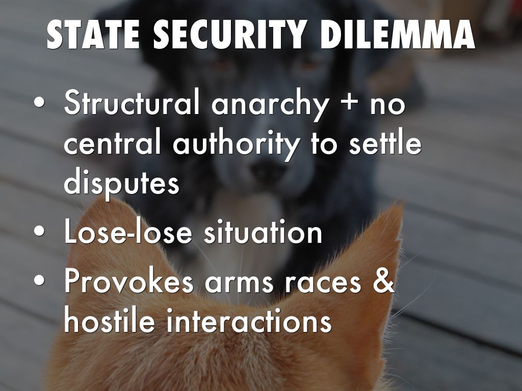 Since no higher authority--> anarchy: states are on their own in intl arena to figure out how to live with one another