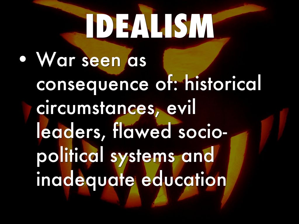 War seen as consequence of: historical circumstances, evil leaders, flawed socio-political systems and inadequate education