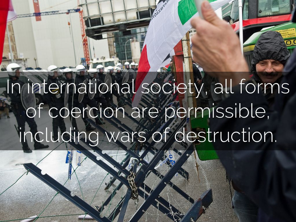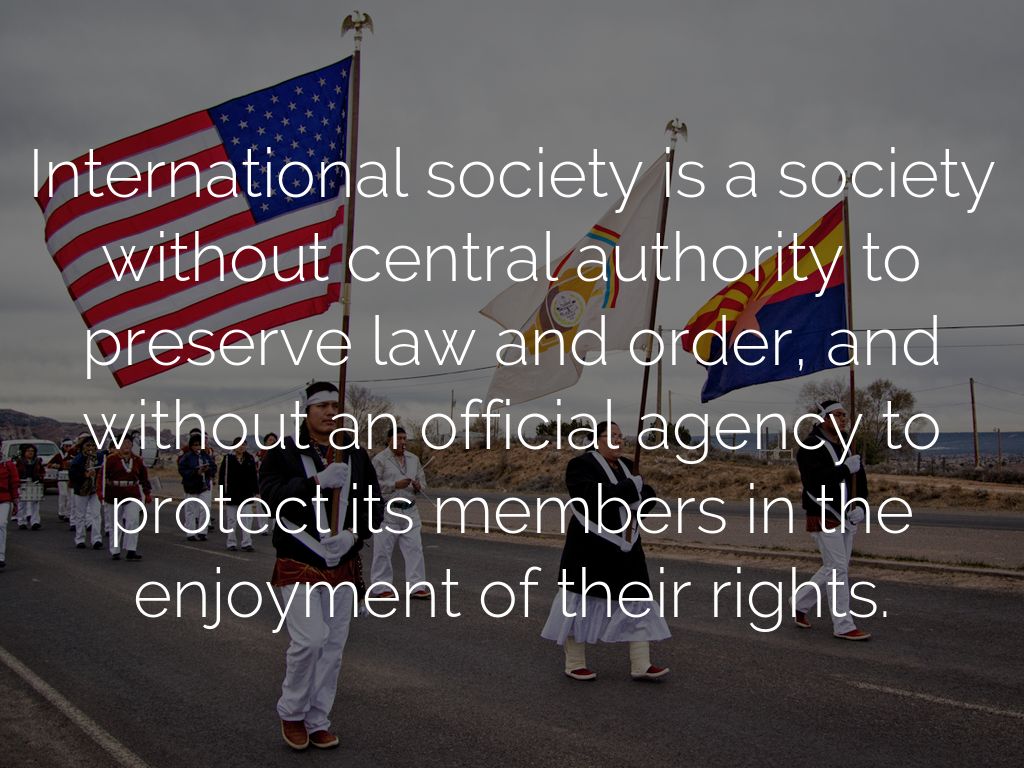 International society is a society without central authority to preserve law and order, and without an official agency to protect its members in the enjoyment of their rights.