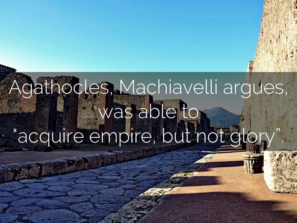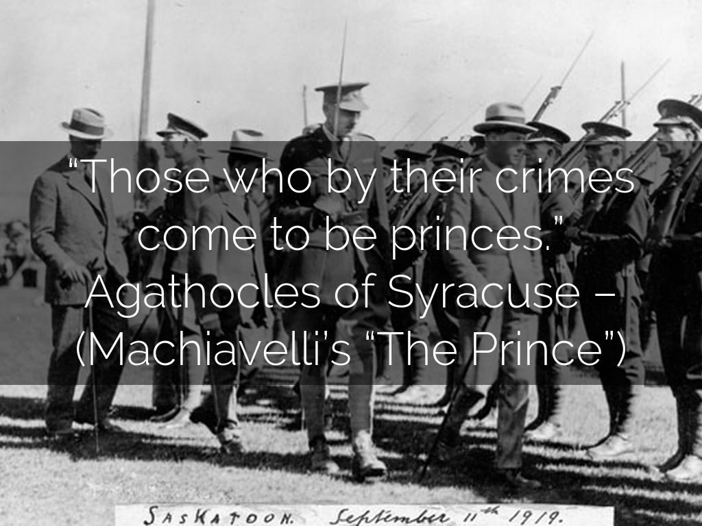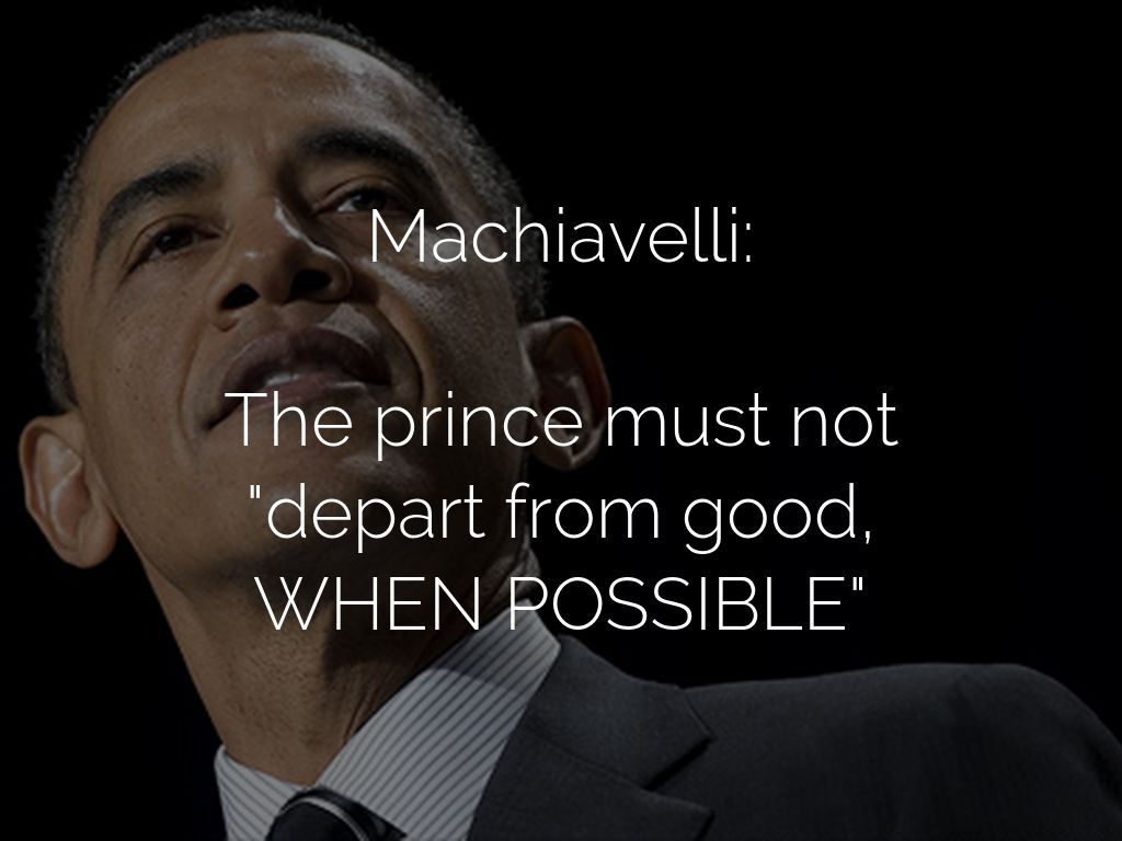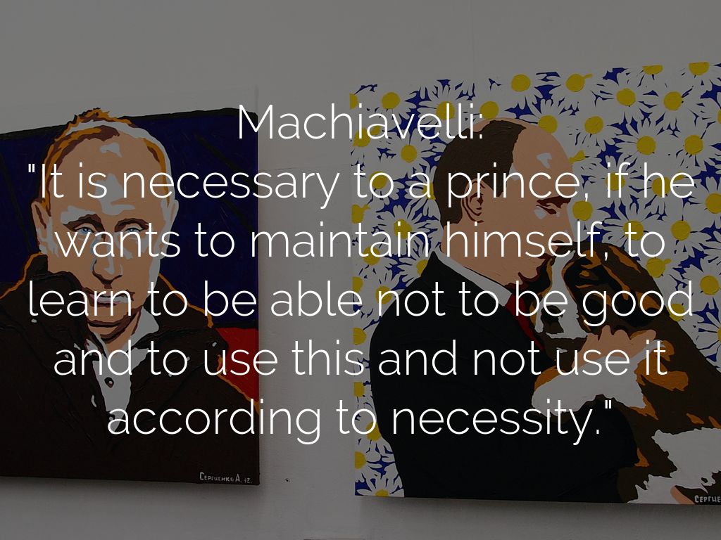 Machiavelli: "It is necessary to a prince, if he wants to maintain himself, to learn to be able not to be good and to use this and not use it according to necessity."