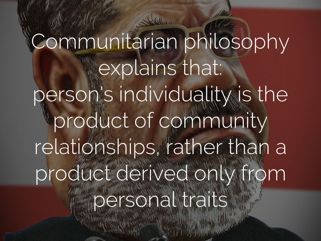 Communitarian philosophy explains that: person's individuality is the product of community relationships, rather than a product derived only from personal traits