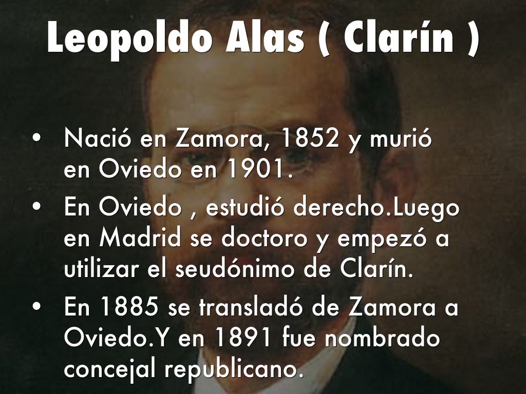• En Oviedo , estudió derecho.Luego en Madrid se doctoro y empezó a utilizar el seudónimo de Clarín.