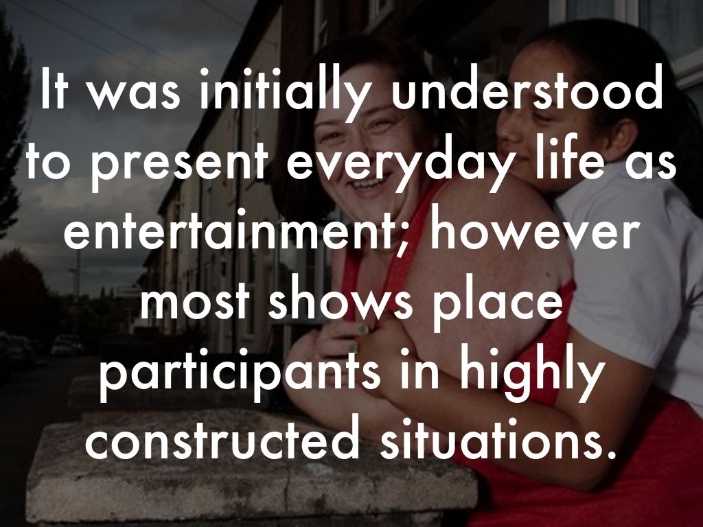 It was initially understood to present everyday life as entertainment; however most shows place participants in highly constructed situations.