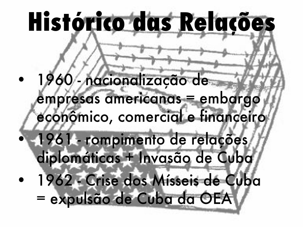 1960 - nacionalização de empresas americanas = embargo econômico, comercial e financeiro