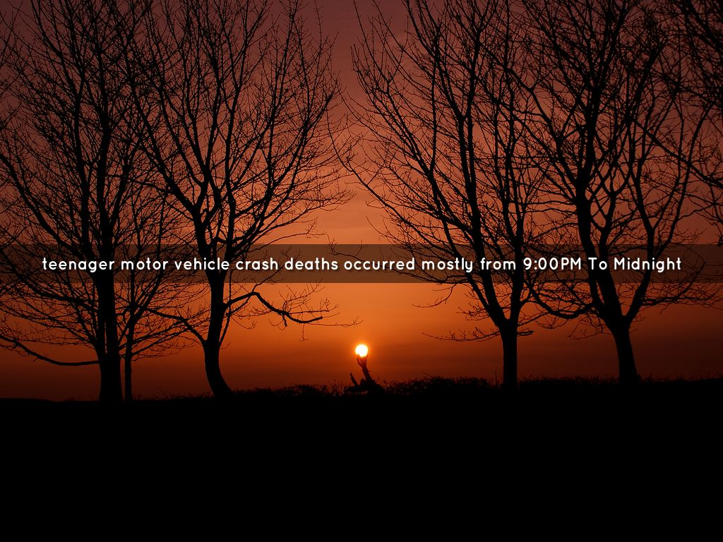 teenager motor vehicle crash deaths occurred mostly from 9:00PM To Midnight