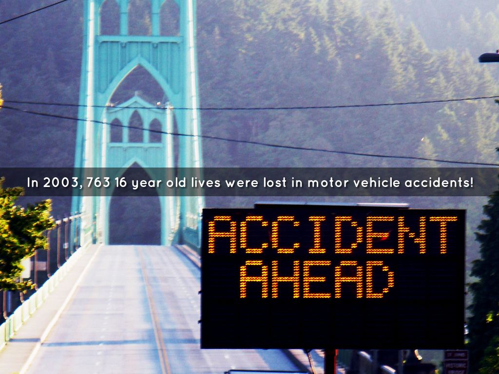 In 2003, 763 16 year old lives were lost in motor vehicle accidents!