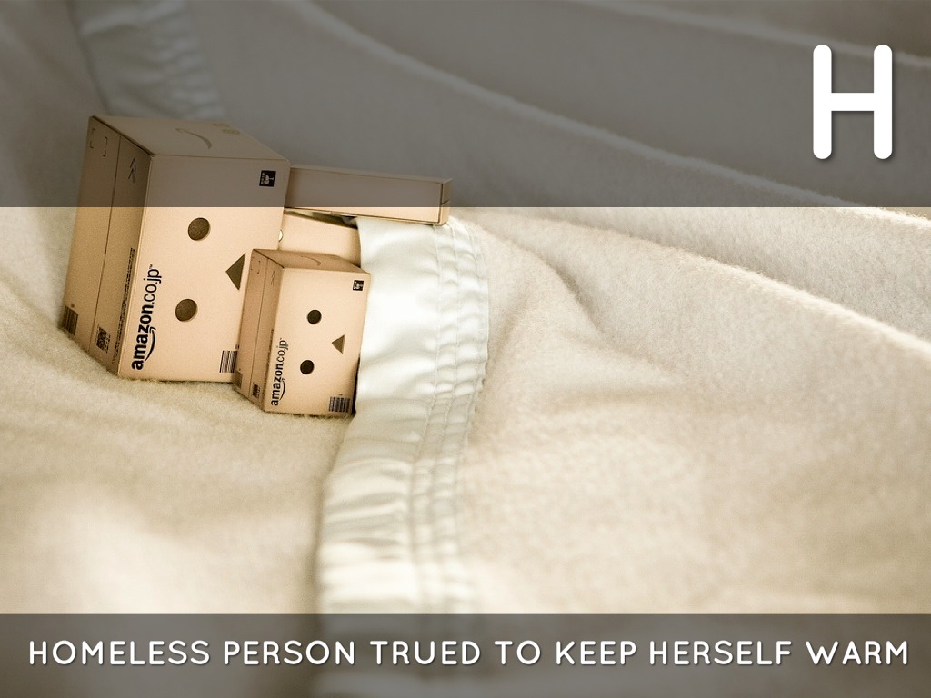 HOMELESS PERSON TRUED TO KEEP HERSELF WARM