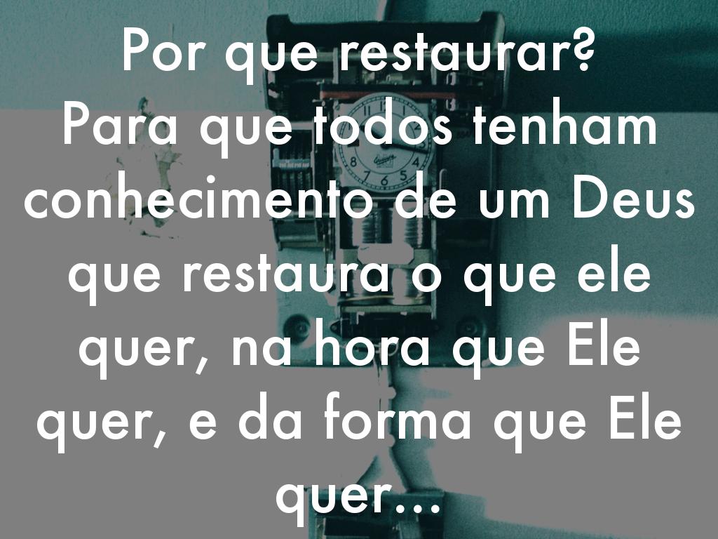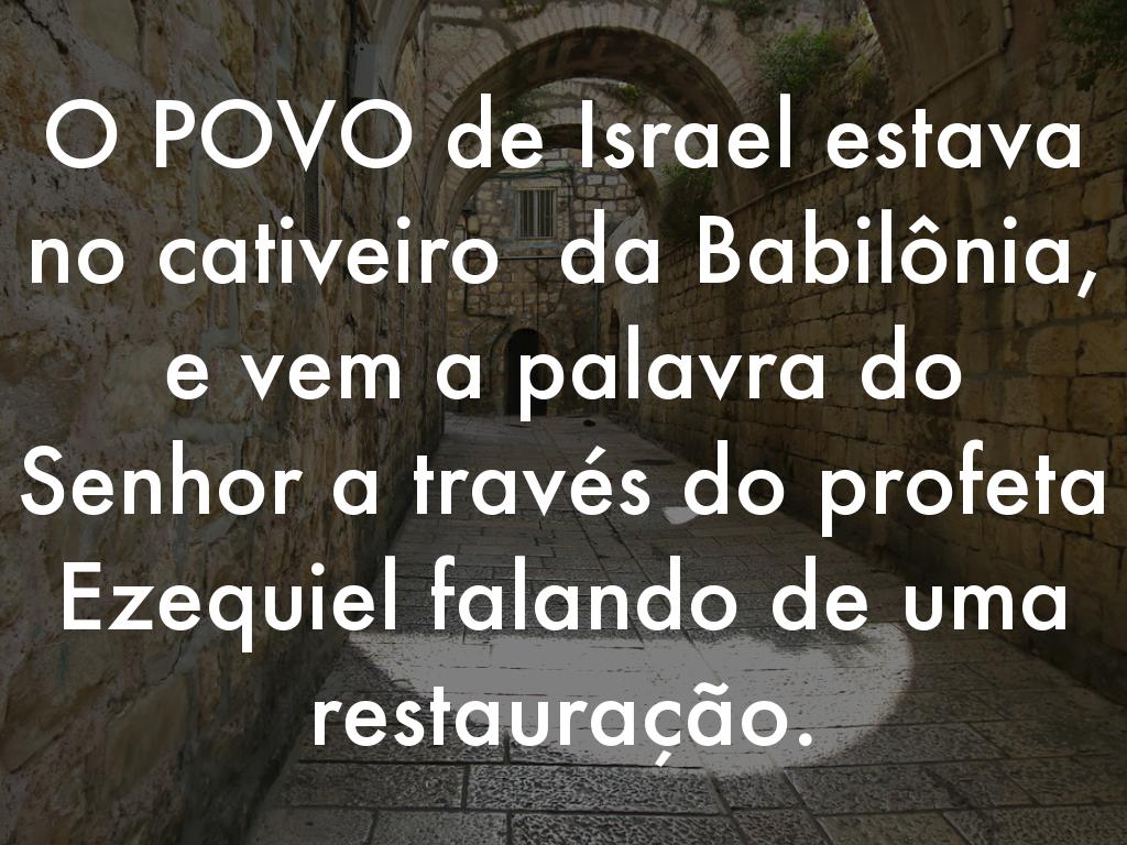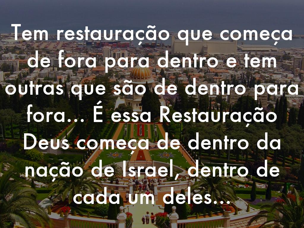 Tem restauração que começa de fora para dentro e tem outras que são de dentro para fora... É essa Restauração Deus começa de dentro da nação de Israel, dentro de cada um deles...
