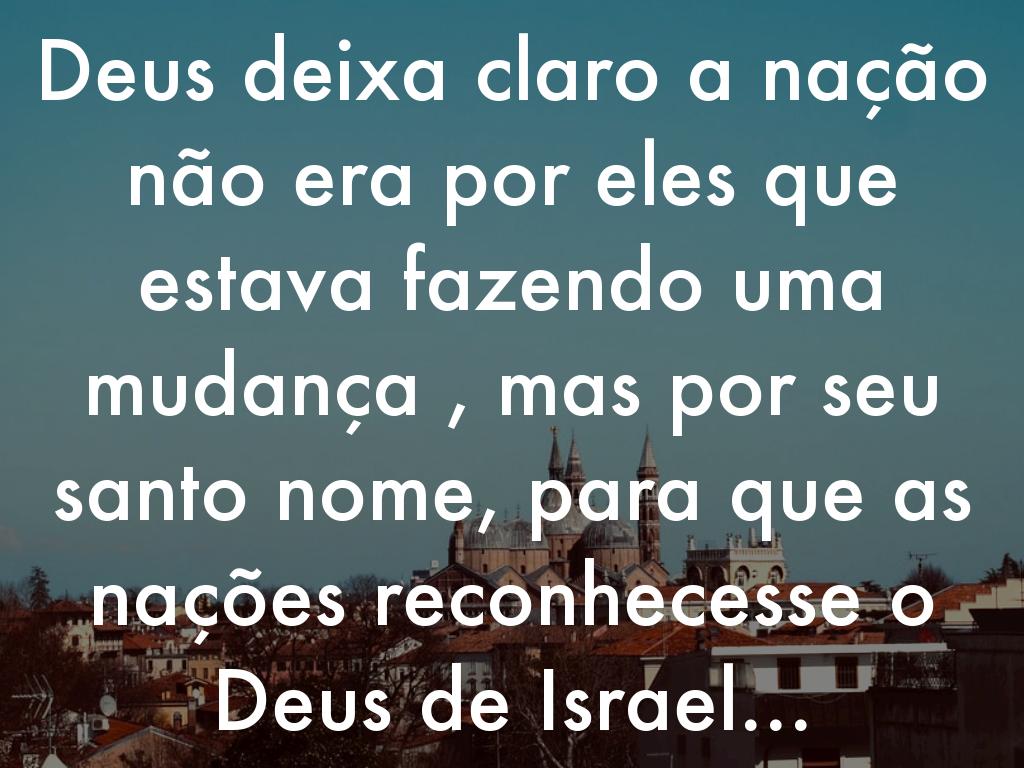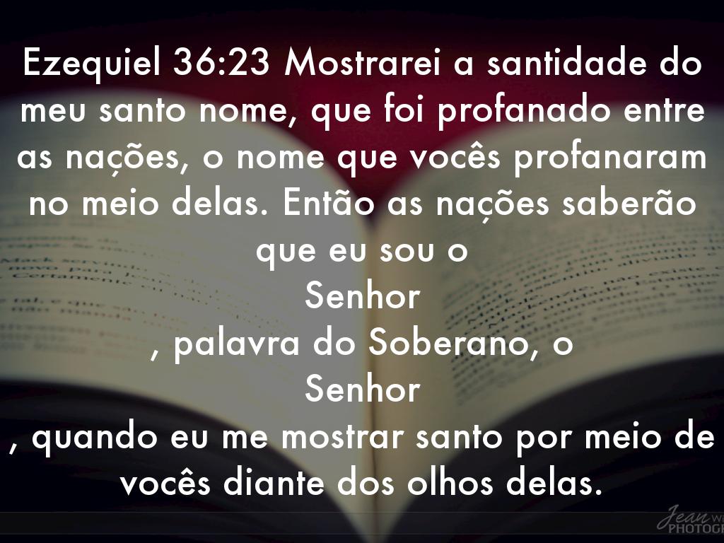 Ezequiel 36:23 Mostrarei a santidade do meu santo nome, que foi profanado entre as nações, o nome que vocês profanaram no meio delas. Então as nações saberão que eu sou o Senhor , palavra do Soberano, o Senhor , quando eu me mostrar santo por meio de vocês diante dos olhos delas.