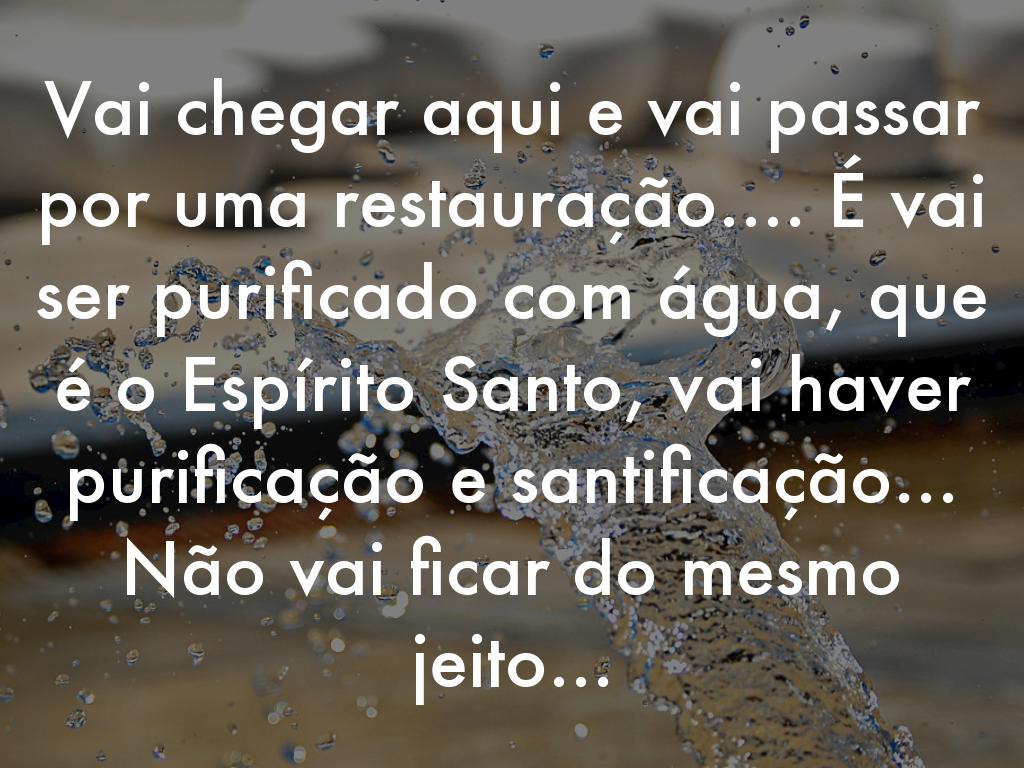 Vai chegar aqui e vai passar por uma restauração.... É vai ser purificado com água, que é o Espírito Santo, vai haver purificação e santificação... Não vai ficar do mesmo jeito...