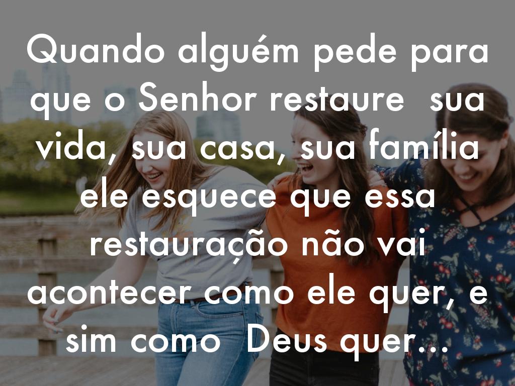 Quando alguém pede para que o Senhor restaure sua vida, sua casa, sua família ele esquece que essa restauração não vai acontecer como ele quer, e sim como Deus quer...