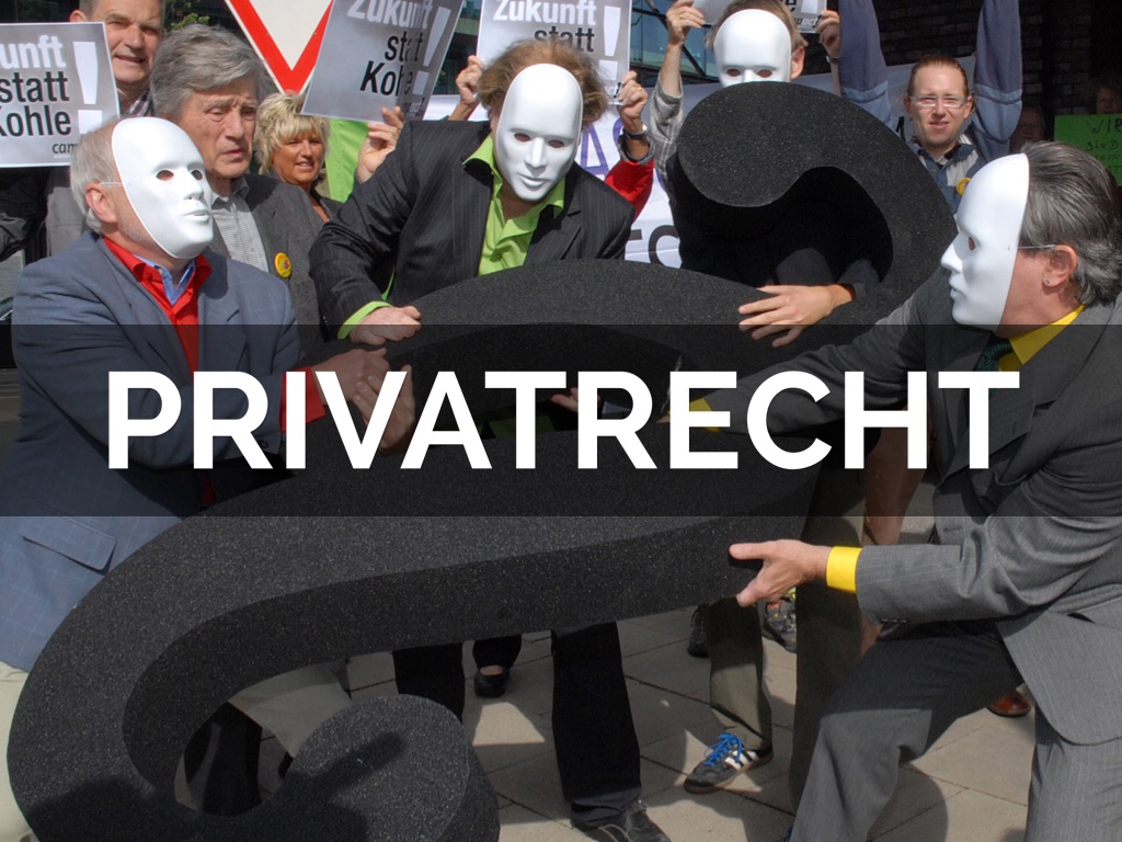 • Das Privatrecht regelt Rechtsverhältnisse zwischen Bürger untereinander (Privatpersonen). Das Prinzip von Über- und Unterordnung existiert nicht. Bürger und Bürger stehen sich gleichberechtigt gegenüber.