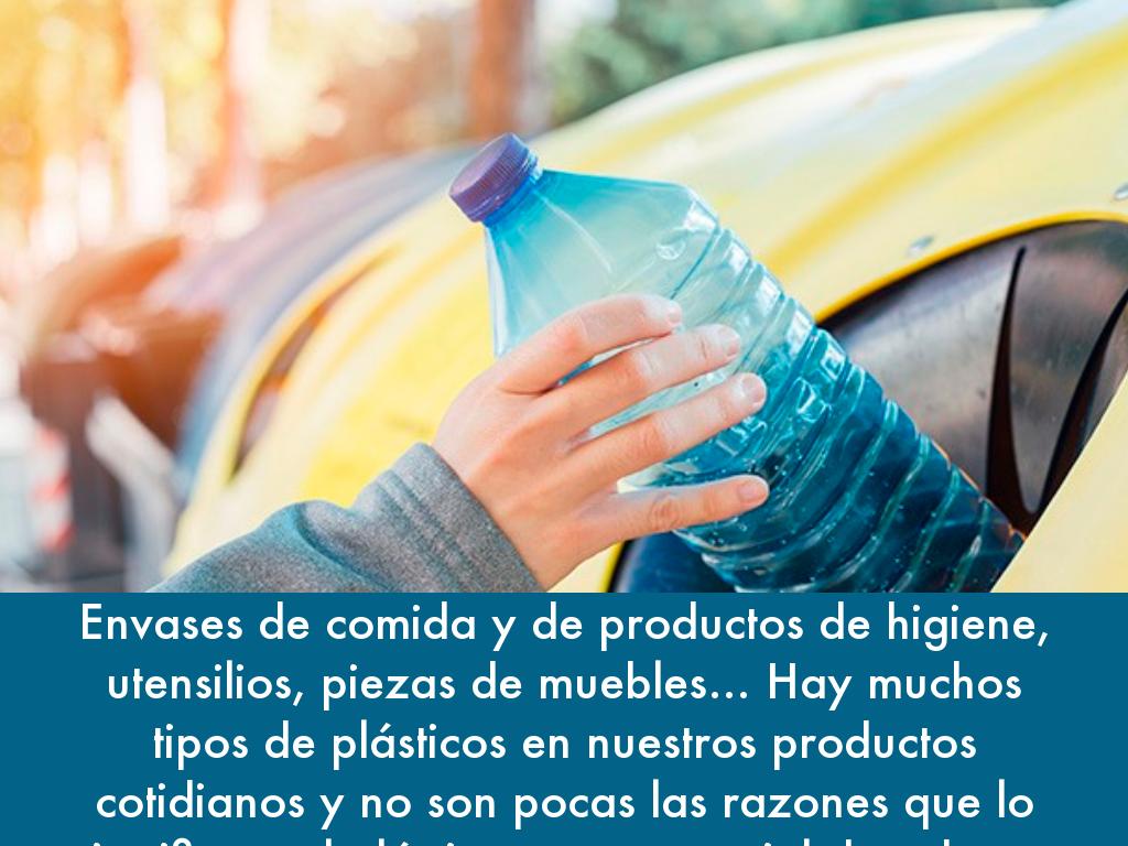 Envases de comida y de productos de higiene, utensilios, piezas de muebles… Hay muchos tipos de plásticos en nuestros productos cotidianos y no son pocas las razones que lo justifican: el plástico es un material duradero, eficaz, barato, higiénico y versátil.