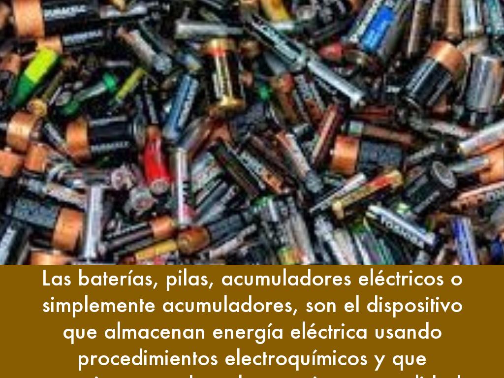 Las baterías, pilas, acumuladores eléctricos o simplemente acumuladores, son el dispositivo que almacenan energía eléctrica usando procedimientos electroquímicos y que posteriormente devuelven casi en su totalidad. Generalmente entendemos que las pilas son una fuente de energía finita, ya que se agota y no es recargable. Por el contrario, las baterías si solemos recargarlas.