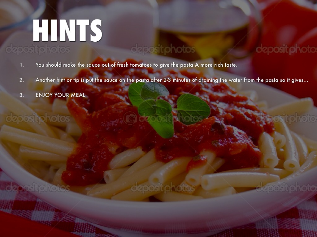 Another hint or tip is put the sauce on the pasta after 2-3 minutes of draining the water from the pasta so it gives it a less watery taste.