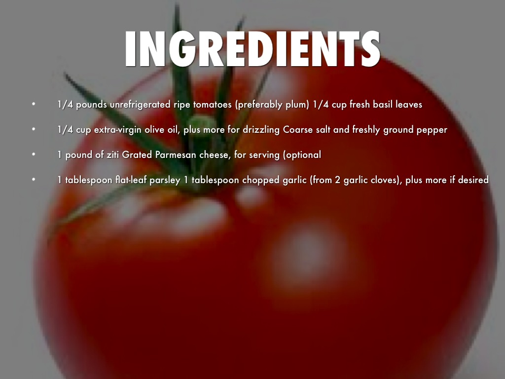 You should make the sauce out of fresh tomatoes to give the pasta A more rich taste.