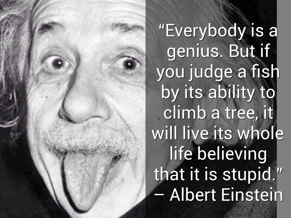 “Everybody is a genius. But if you judge a fish by its ability to climb a tree, it will live its whole life believing that it is stupid.”