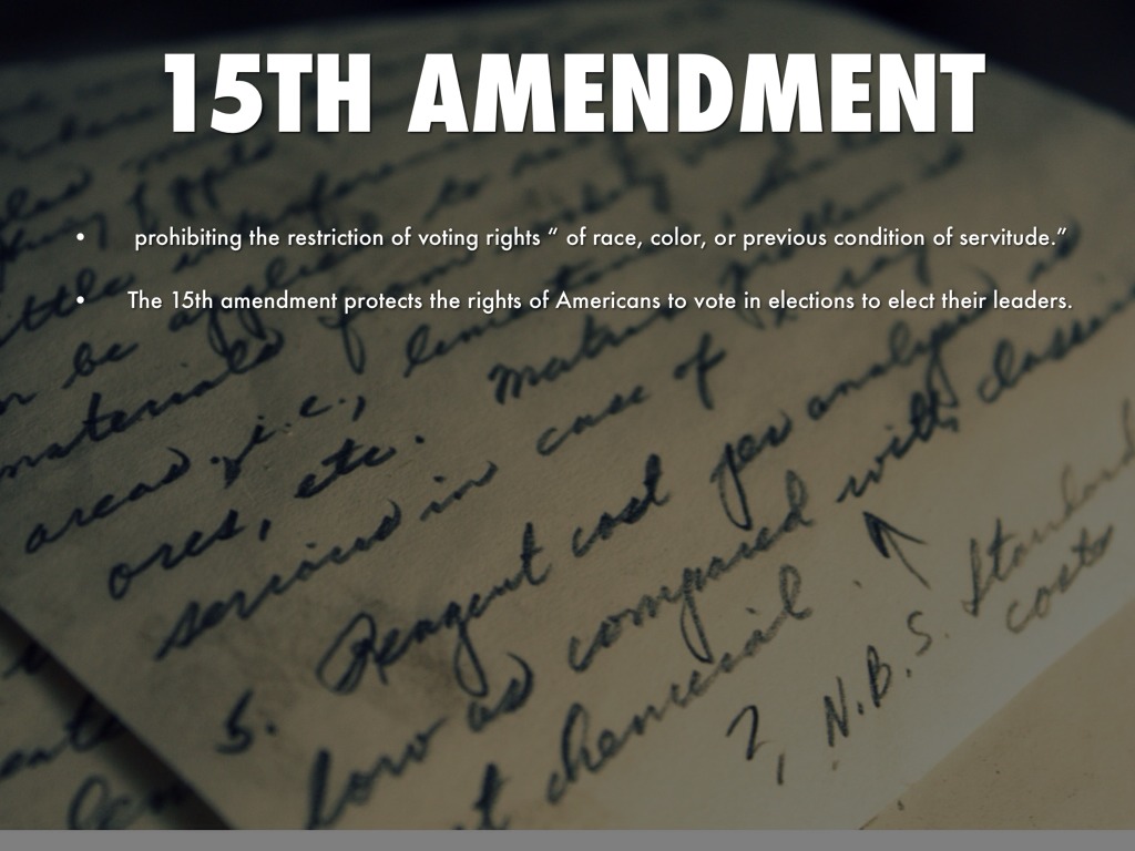 The 15th amendment protects the rights of Americans to vote in elections to elect their leaders.