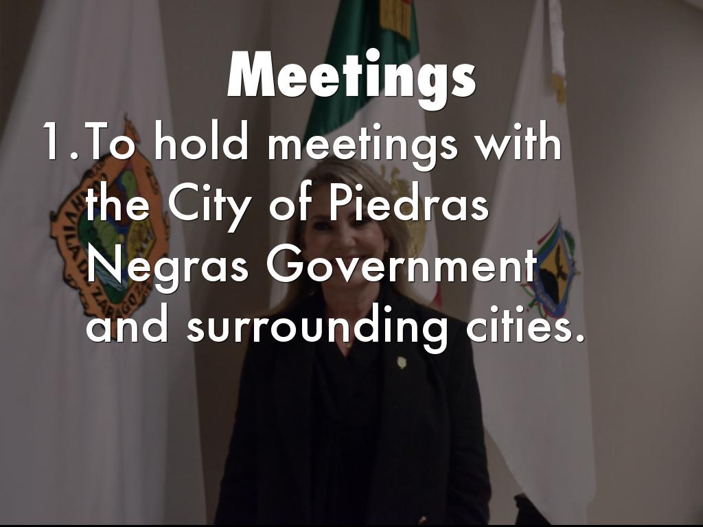 To hold meetings with the City of Piedras Negras Government and surrounding cities.