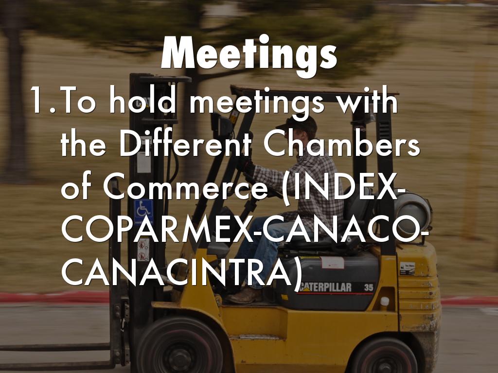 To hold meetings with the Different Chambers of Commerce (INDEX-COPARMEX-CANACO-CANACINTRA)
