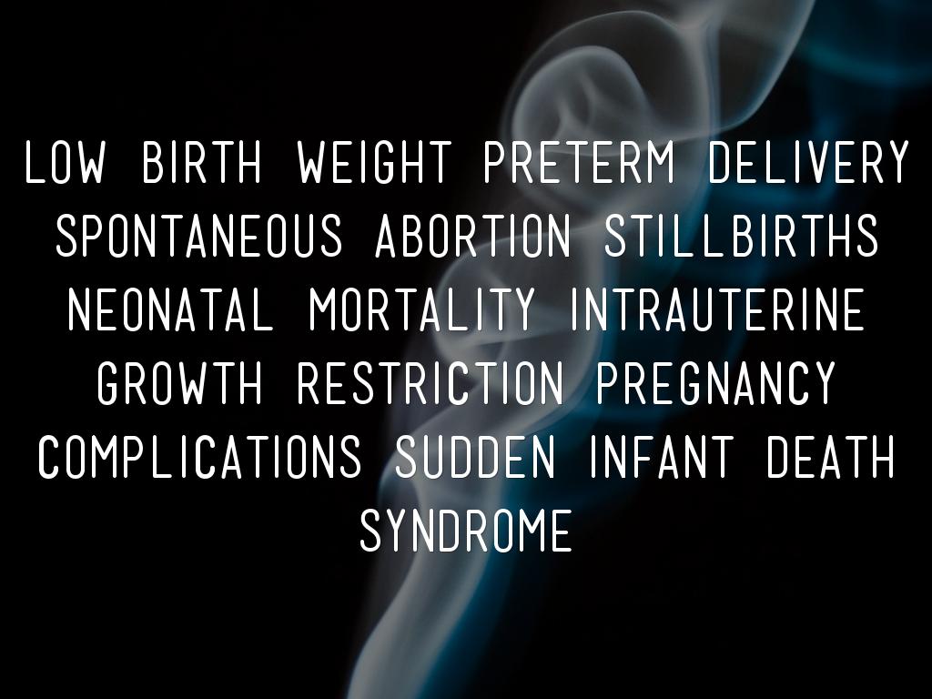 LOW BIRTH WEIGHT PRETERM DELIVERY SPONTANEOUS ABORTION STILLBIRTHS NEONATAL MORTALITY INTRAUTERINE GROWTH RESTRICTION PREGNANCY COMPLICATIONS SUDDEN INFANT DEATH SYNDROME