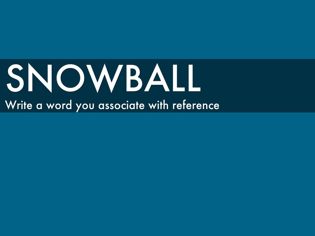at this point will play "snowball" game. Hand out paper to everyone and have them write down one word they associate with reference. Then crumple paper and throw it at someone else. Have people read the papers they end up with.