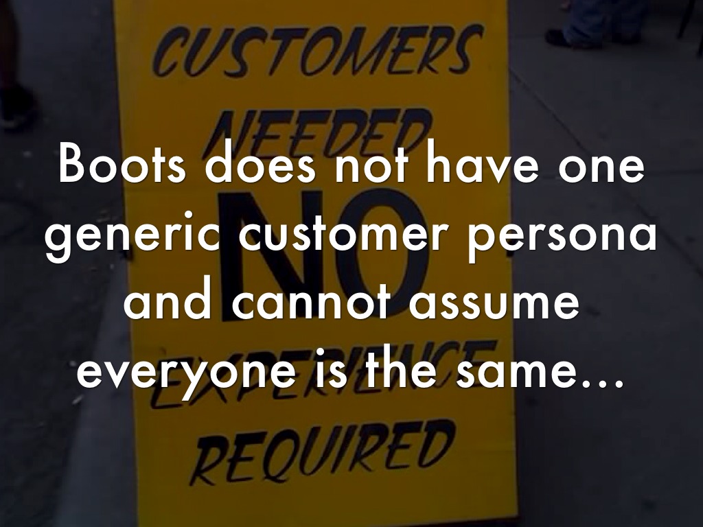 Boots does not have one generic customer persona and cannot assume everyone is the same...