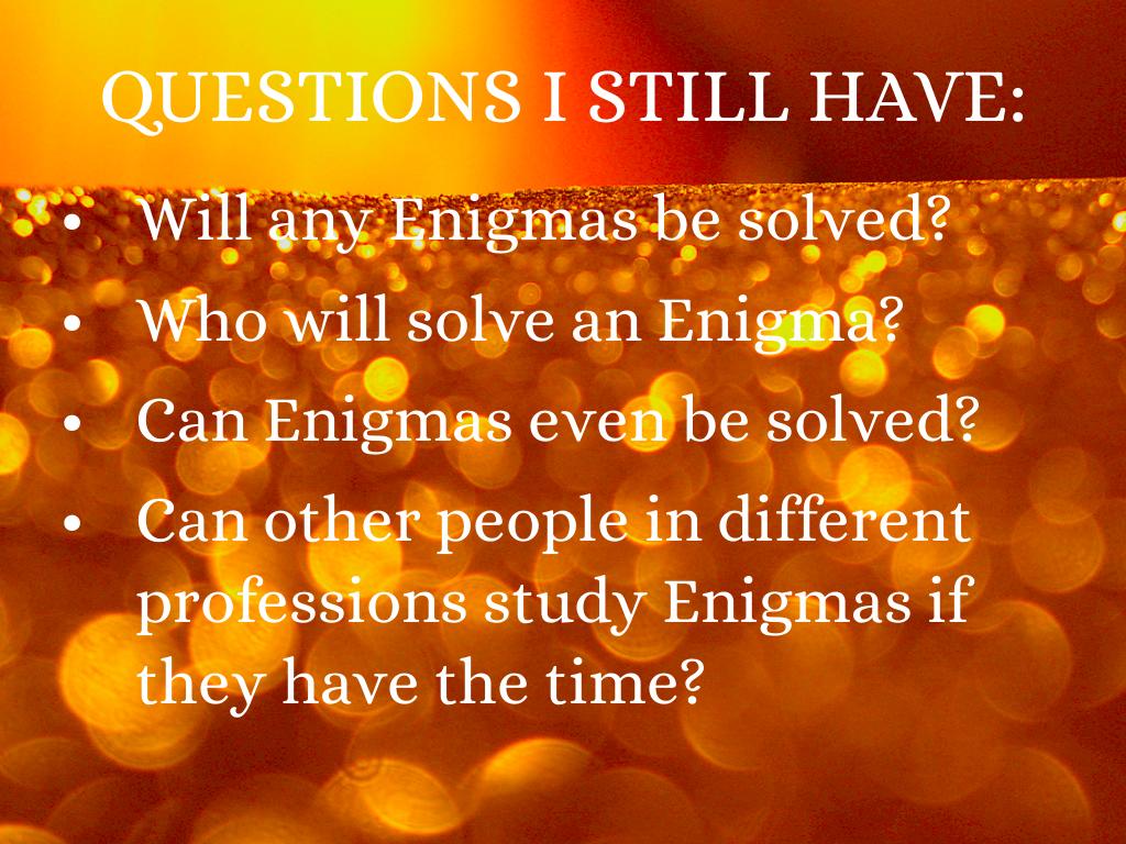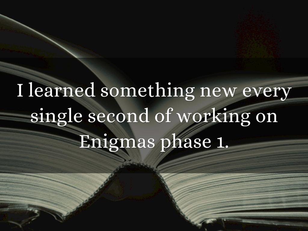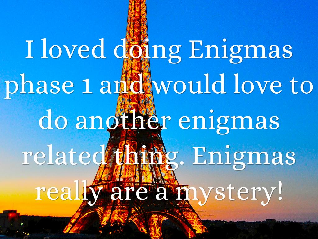 I loved doing Enigmas phase 1 and would love to do another enigmas related thing. Enigmas really are a mystery!