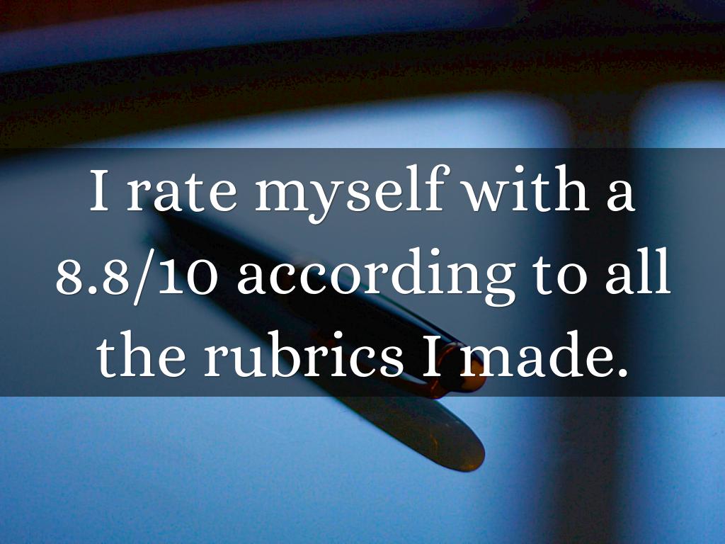 I rate myself with a 8.8/10 according to all the rubrics I made.
