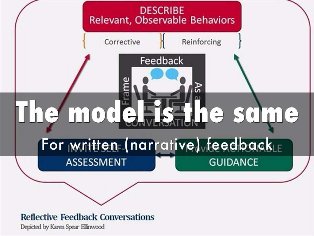This presentation outlines the essential components of engaging learners (medical students or residents) in reflective feedback conversations, a model developed by Cantillon & Sargeant (2008). The presentation promotes a unique application of this model by integrating BDA (Vacca & Vacca, 2008) and RIME (Pangaro, 1999) to structure teaching and anchor formative feedback. Author: Karen Spear Ellinwood, PhD, JD, EdS, Director, Faculty Instructional Development, Residents as Educators Program; Assistant Professor, Department of Obstetrics and Gynecology, University of Arizona College of Medicine.