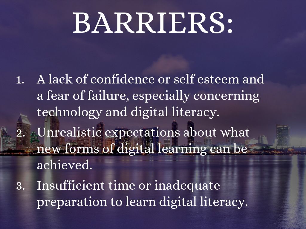 - A lack of confidence or self esteem and a fear of failure, especially concerning technology and digital literacy.