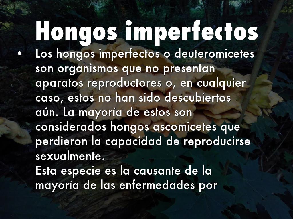 Los hongos imperfectos o deuteromicetes son organismos que no presentan aparatos reproductores o, en cualquier caso, estos no han sido descubiertos aún. La mayoría de estos son considerados hongos ascomicetes que perdieron la capacidad de reproducirse sexualmente.