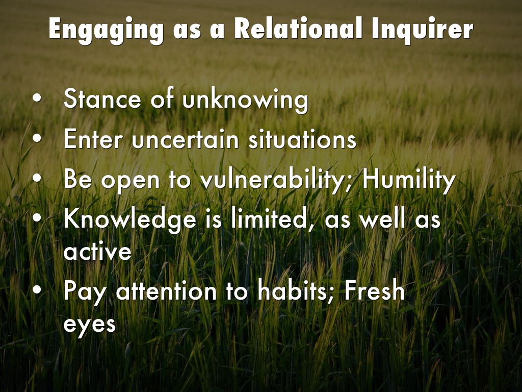 Doane- Hartrick, G., & Varcoe, C. (2015). How to nurse: Relational inquiry with individuals and families in changing health and health care contexts. Philadelphia, PA: Lippincott Williams & Wilkins.