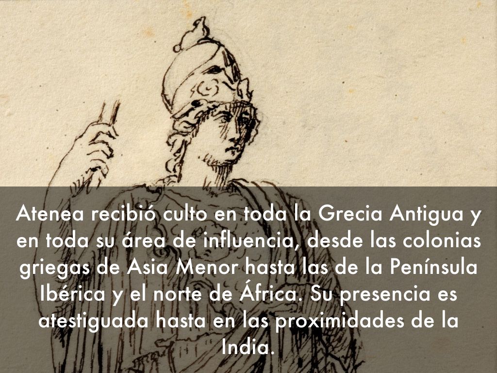 Atenea recibió culto en toda la Grecia Antigua y en toda su área de influencia, desde las colonias griegas de Asia Menor hasta las de la Península Ibérica y el norte de África. Su presencia es atestiguada hasta en las proximidades de la India.