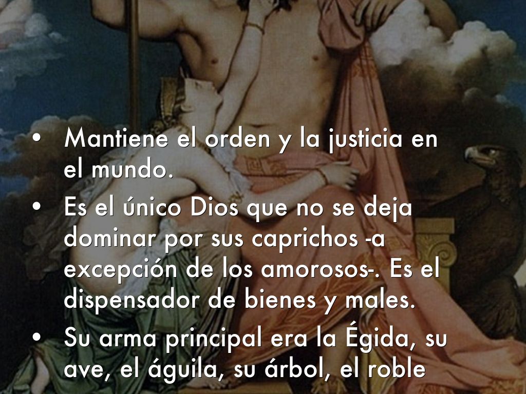 - Es el único Dios que no se deja dominar por sus caprichos -a excepción de los amorosos-. Es el dispensador de bienes y males.