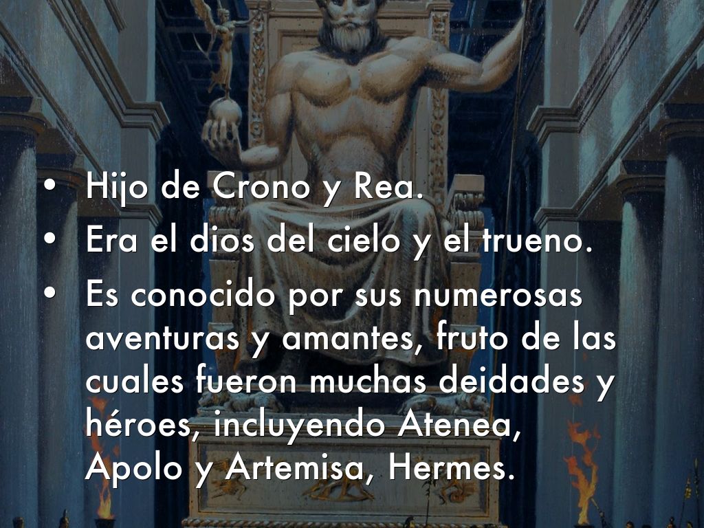 - Es conocido por sus numerosas aventuras y amantes, fruto de las cuales fueron muchas deidades y héroes, incluyendo Atenea, Apolo y Artemisa, Hermes.