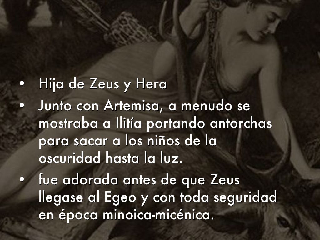 - Junto con Artemisa, a menudo se mostraba a Ilitía portando antorchas para sacar a los niños de la oscuridad hasta la luz.