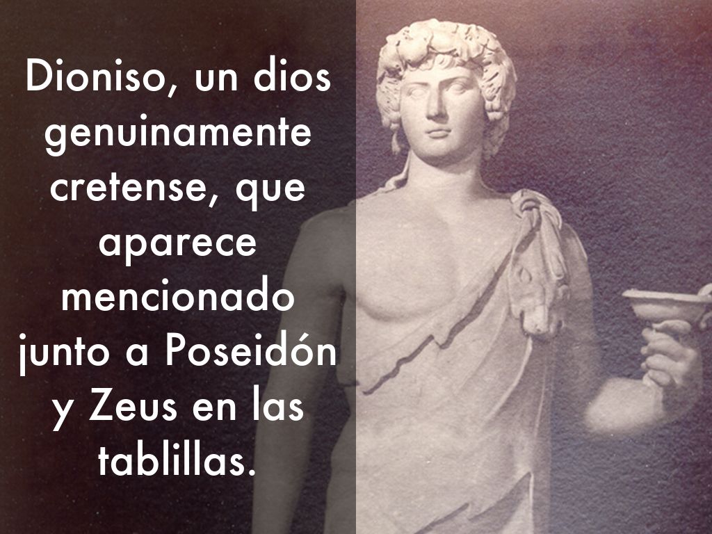 Dioniso, un dios genuinamente cretense, que aparece mencionado junto a Poseidón y Zeus en las tablillas.