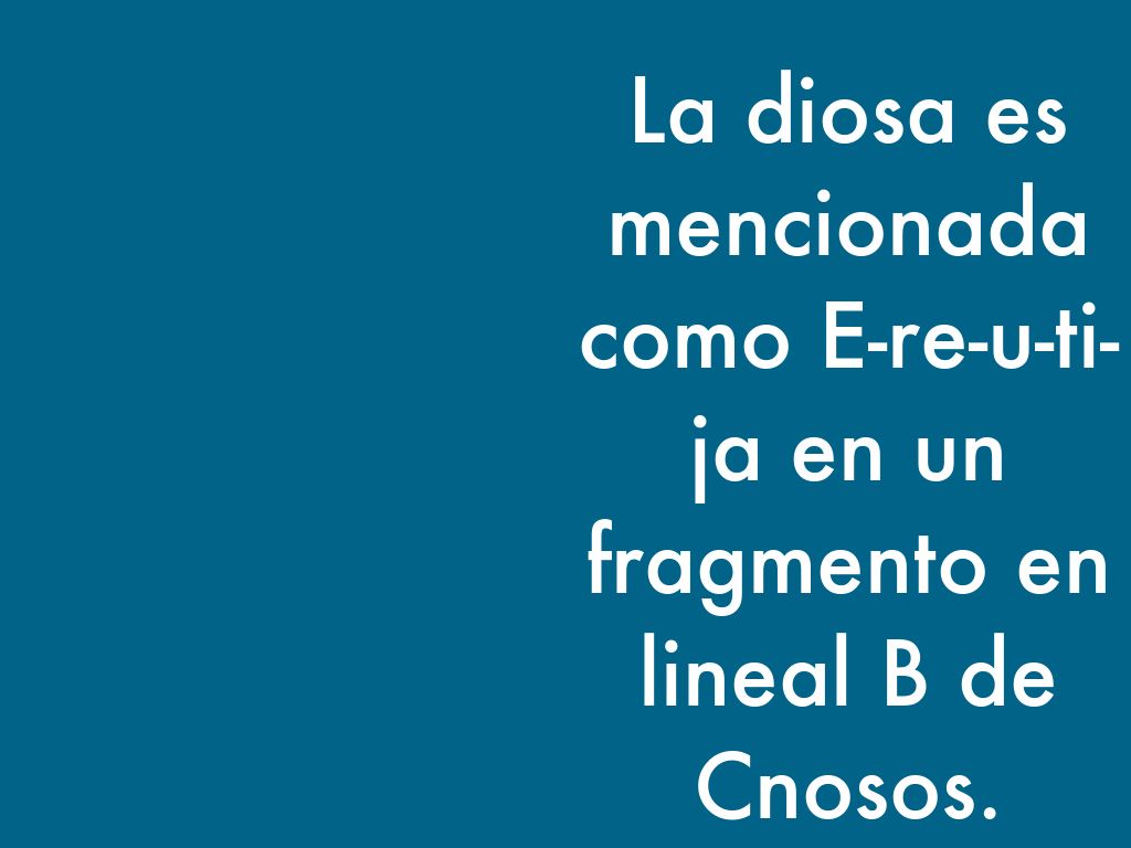La diosa es mencionada como E-re-u-ti-ja en un fragmento en lineal B de Cnosos.