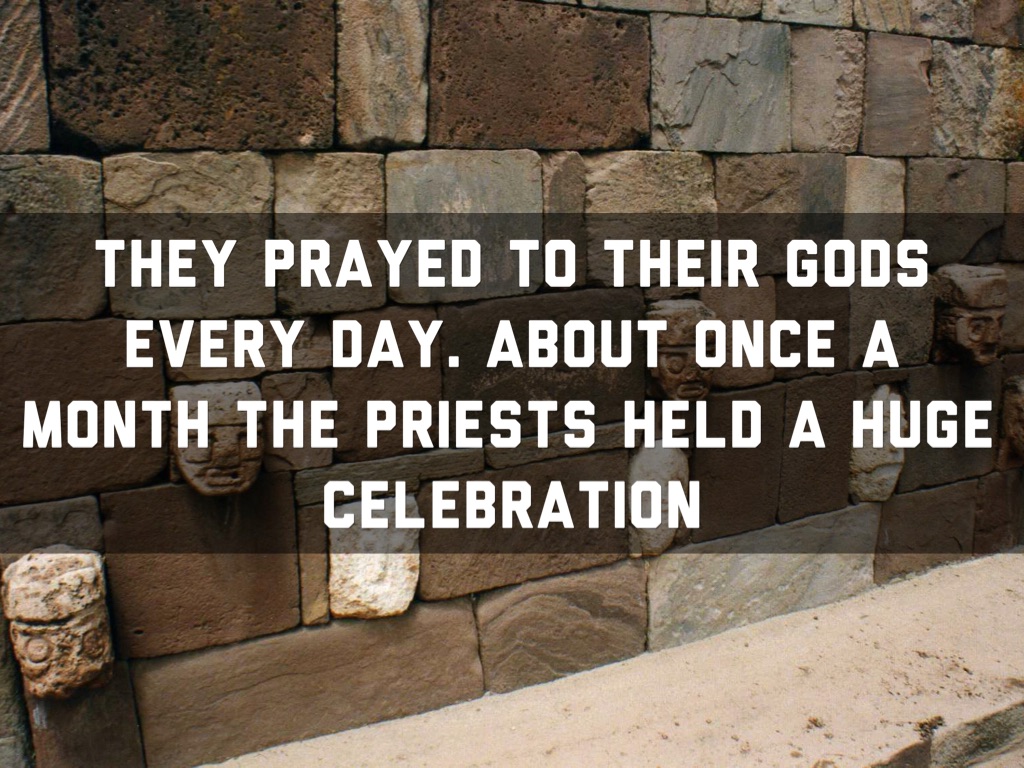 they prayed to their gods every day. About once a month the priests held a huge celebration