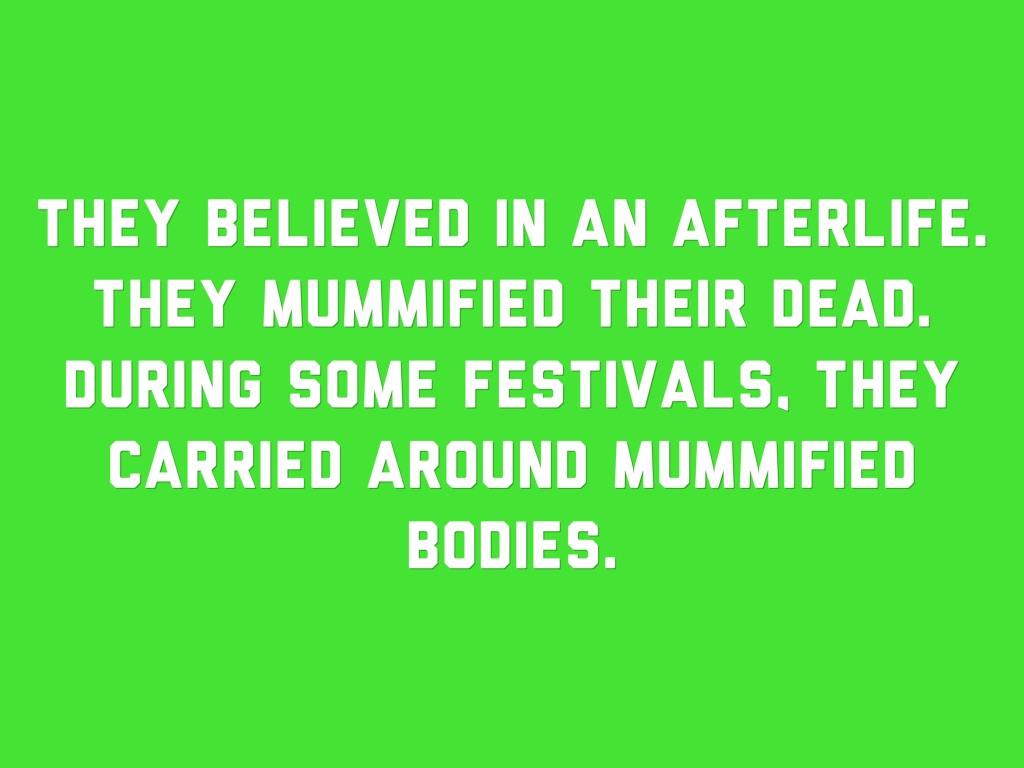 They believed in an afterlife. They mummified their dead. During some festivals, they carried around mummified bodies.