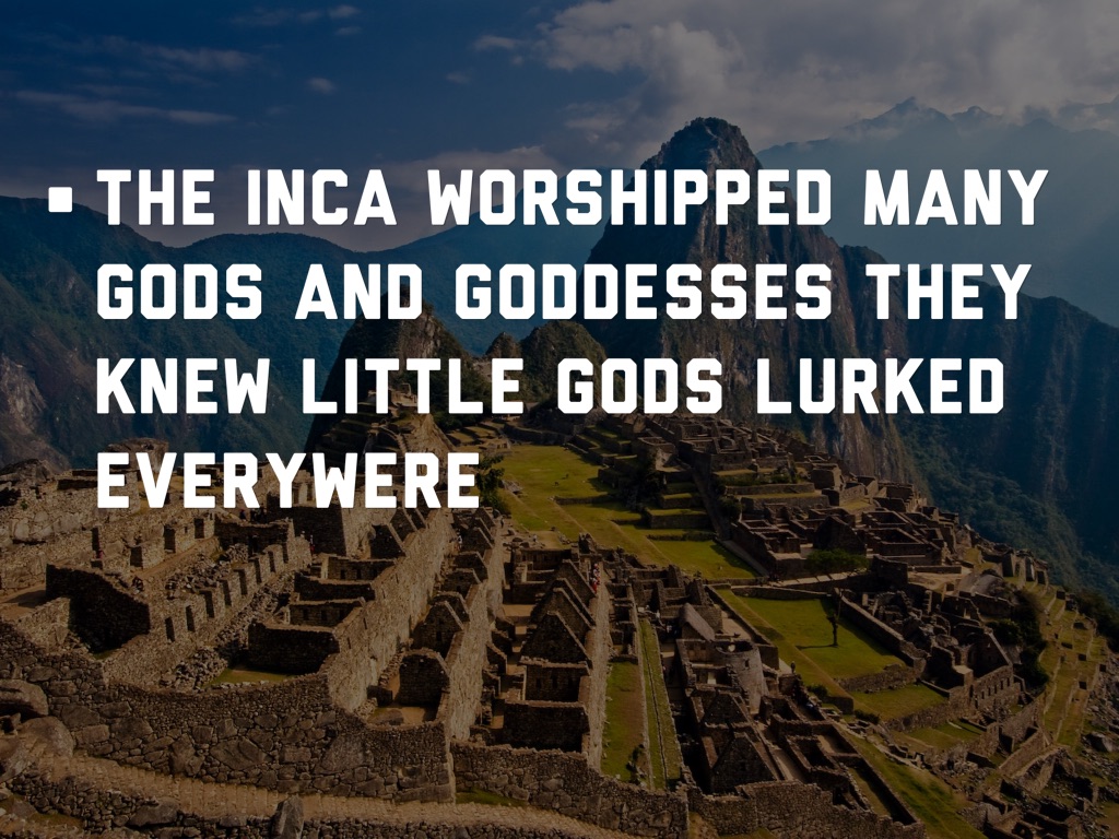 The inca worshipped many gods and goddesses they knew little gods lurked everywere