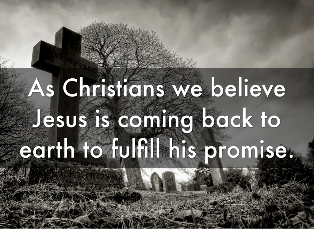 As Christians we believe Jesus is coming back to earth to fulfill his promise.